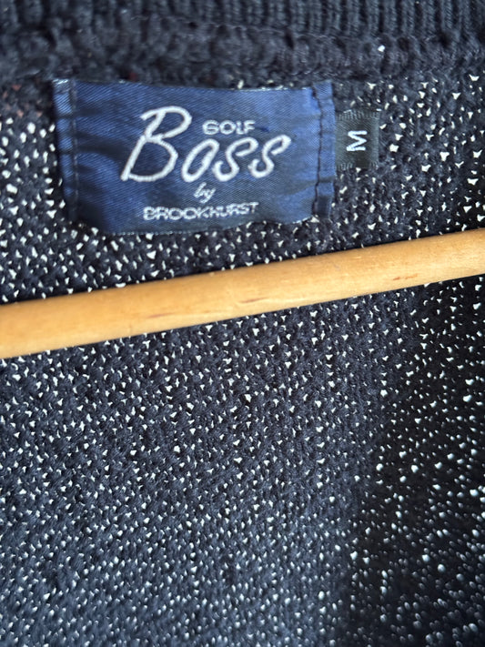 Vintage Golf Boss Cotton V-neck Sweater Vest in Faded Black