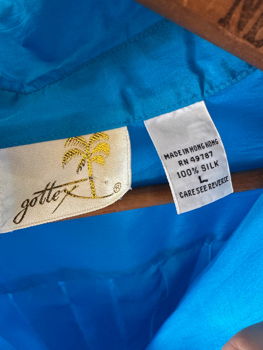 Vintage Gottex Silk Pleated Back Button Down Shirt in Electric Blue