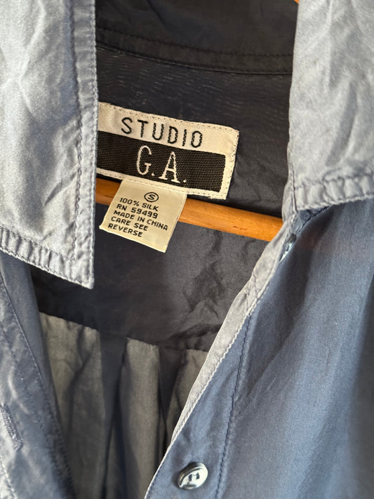 Vintage Studio G.A. Silk Button Down Shirt in Navy