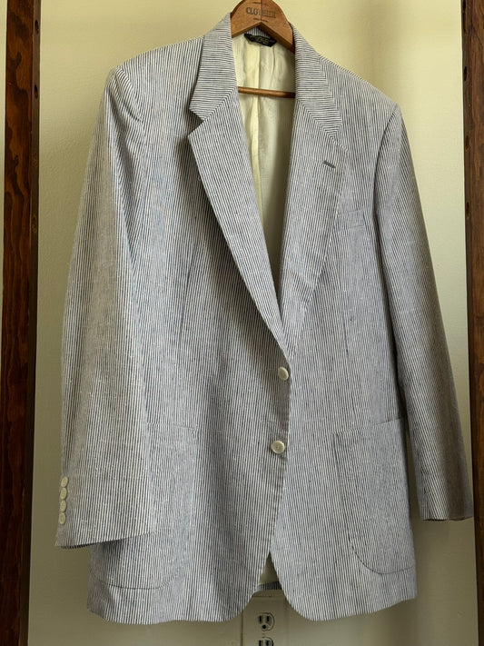 Reclaimed Silk/Linen Blue & White Stripe Sport Coat