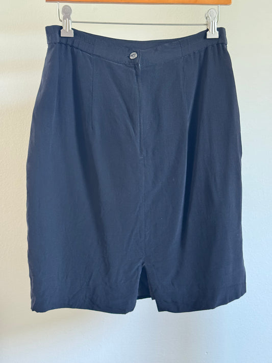 Reclaimed Jaeger Silk/Linen Long Straight Skirt in Black