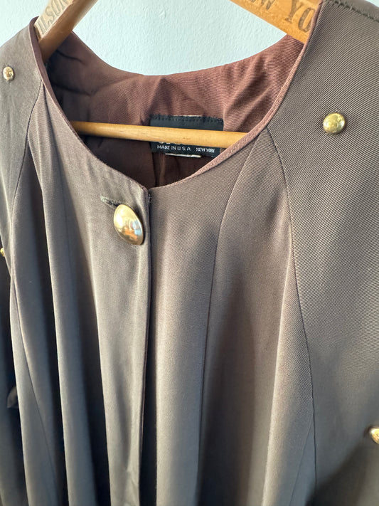 Vintage Studio I Brass Studded Dress Coat in Olive Brown