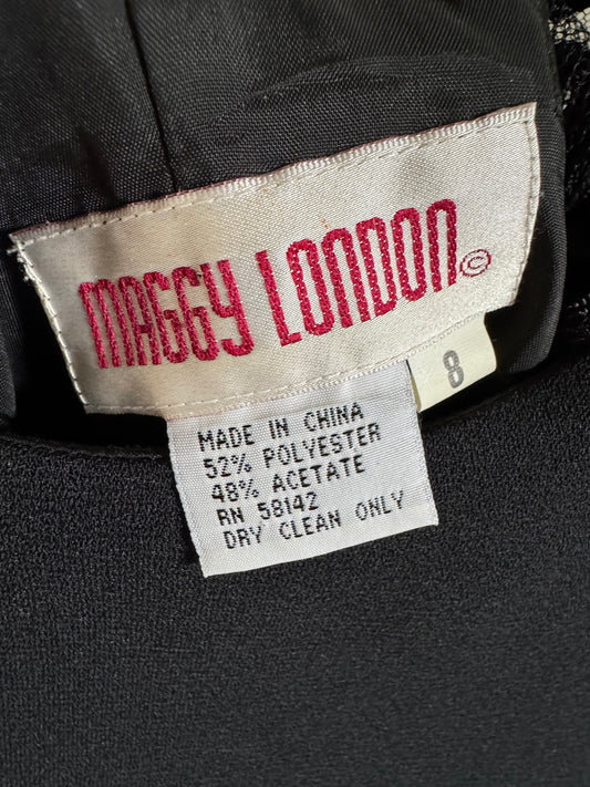 Vintage Maggie London Long Krewel Lace Back Dress in Black
