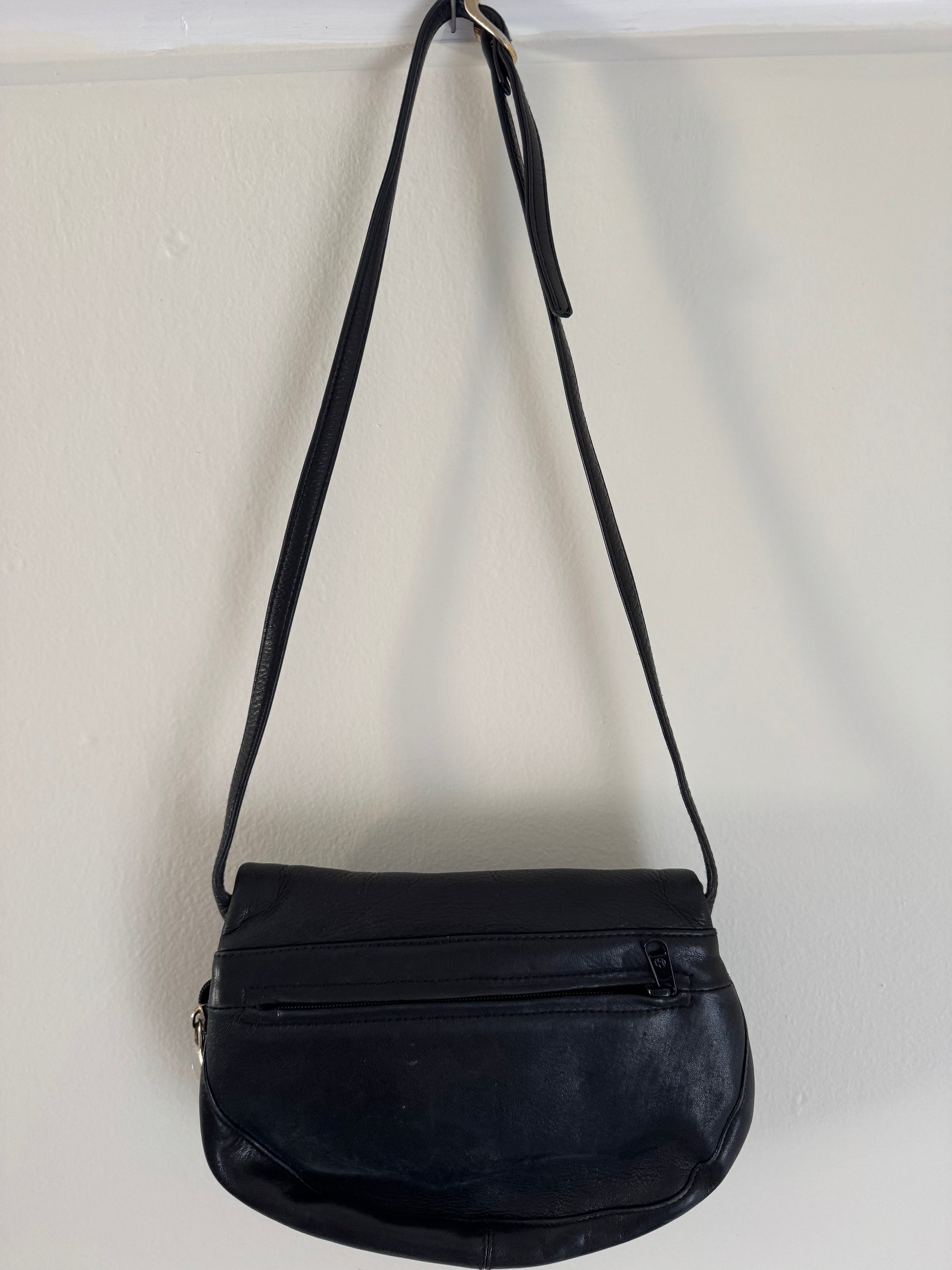 Pebbled Leather Fold Over Handbag in Black
