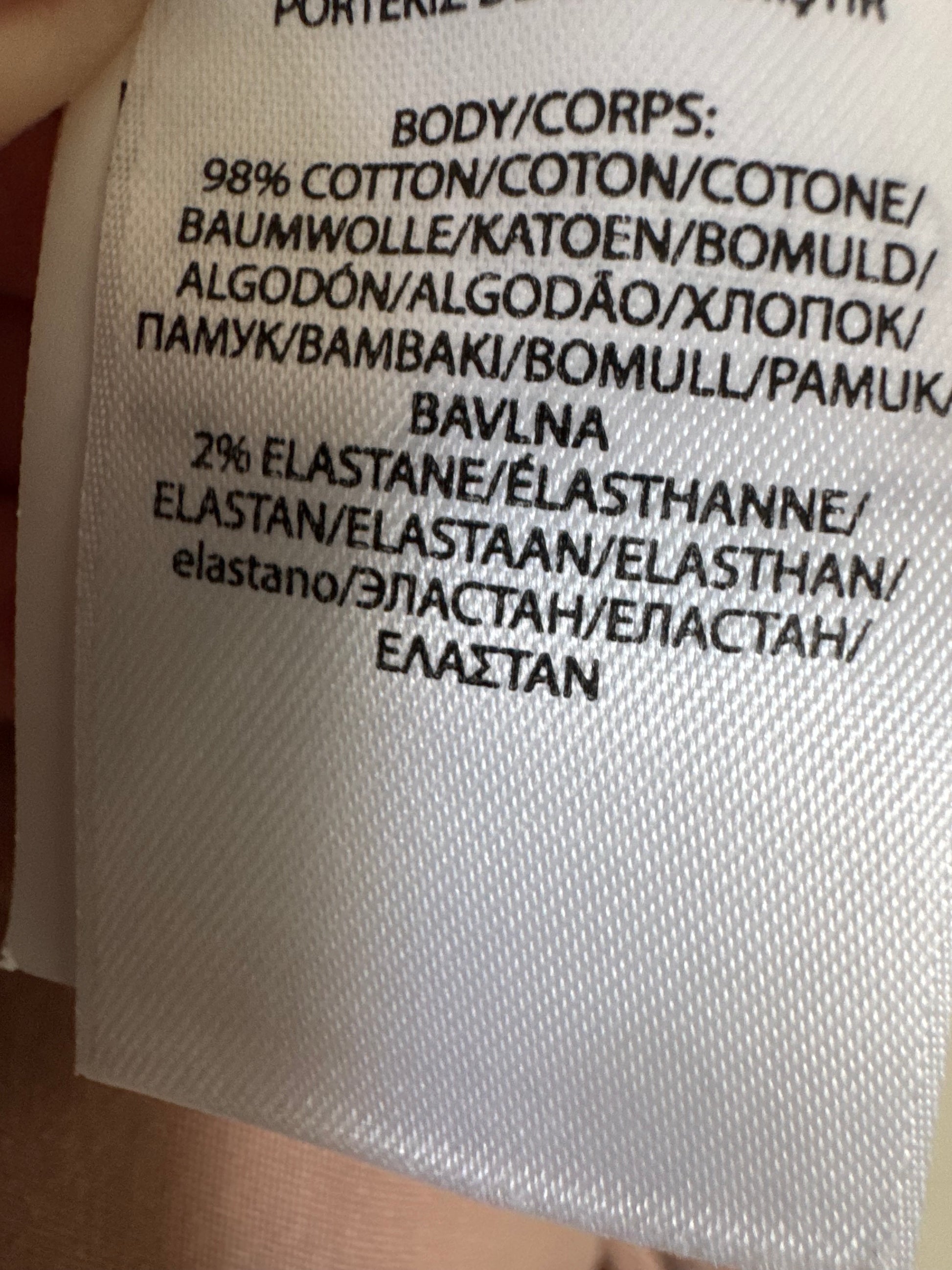 Fabric: 98% Cotton/ 2%Elastane