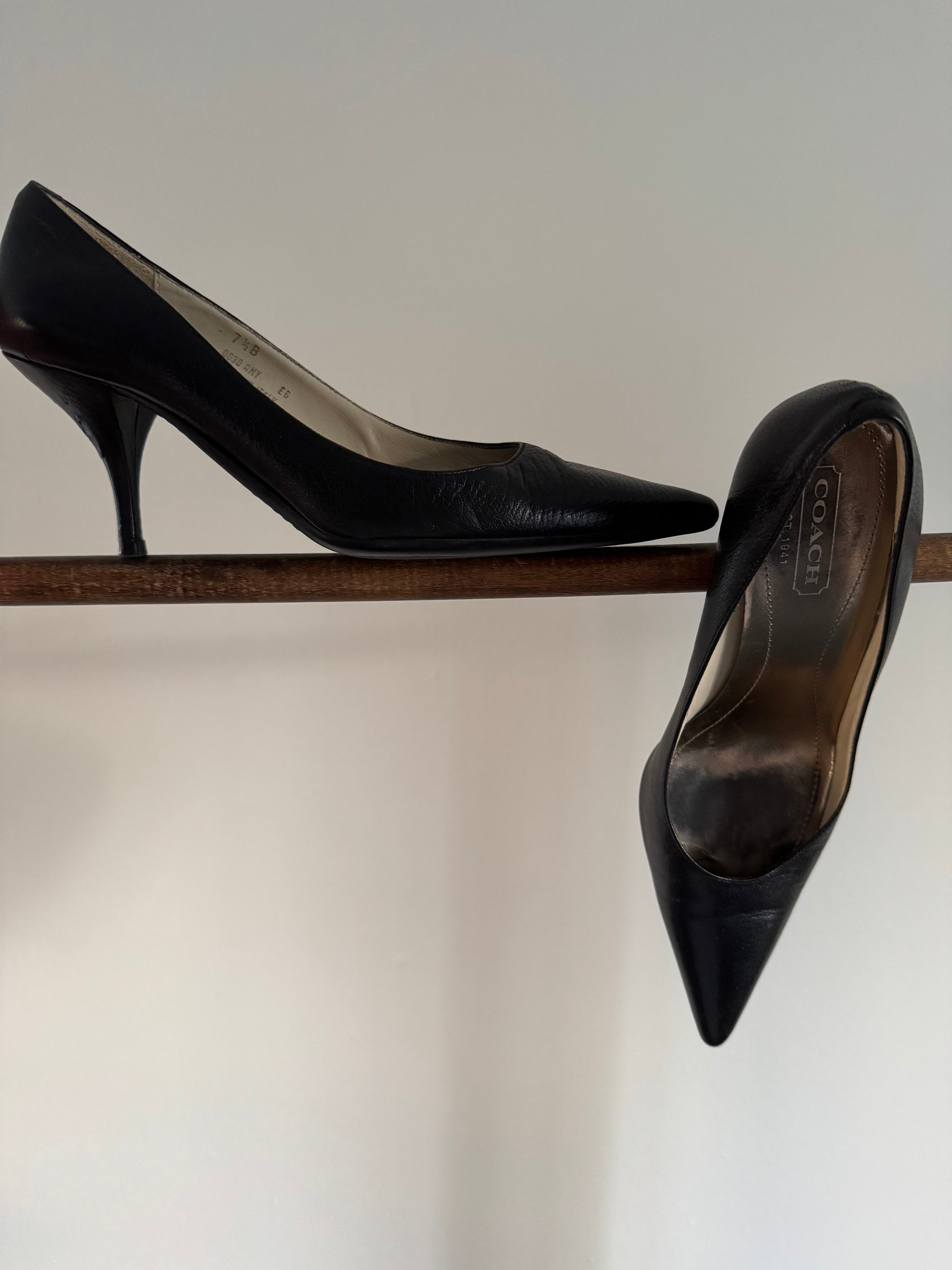 Reclaimed Coach Leather Heels in Black