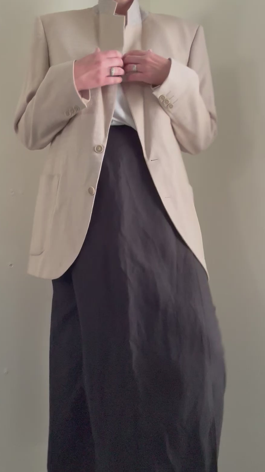 Reclaimed Jaeger Silk/Linen Long Straight Skirt in Black