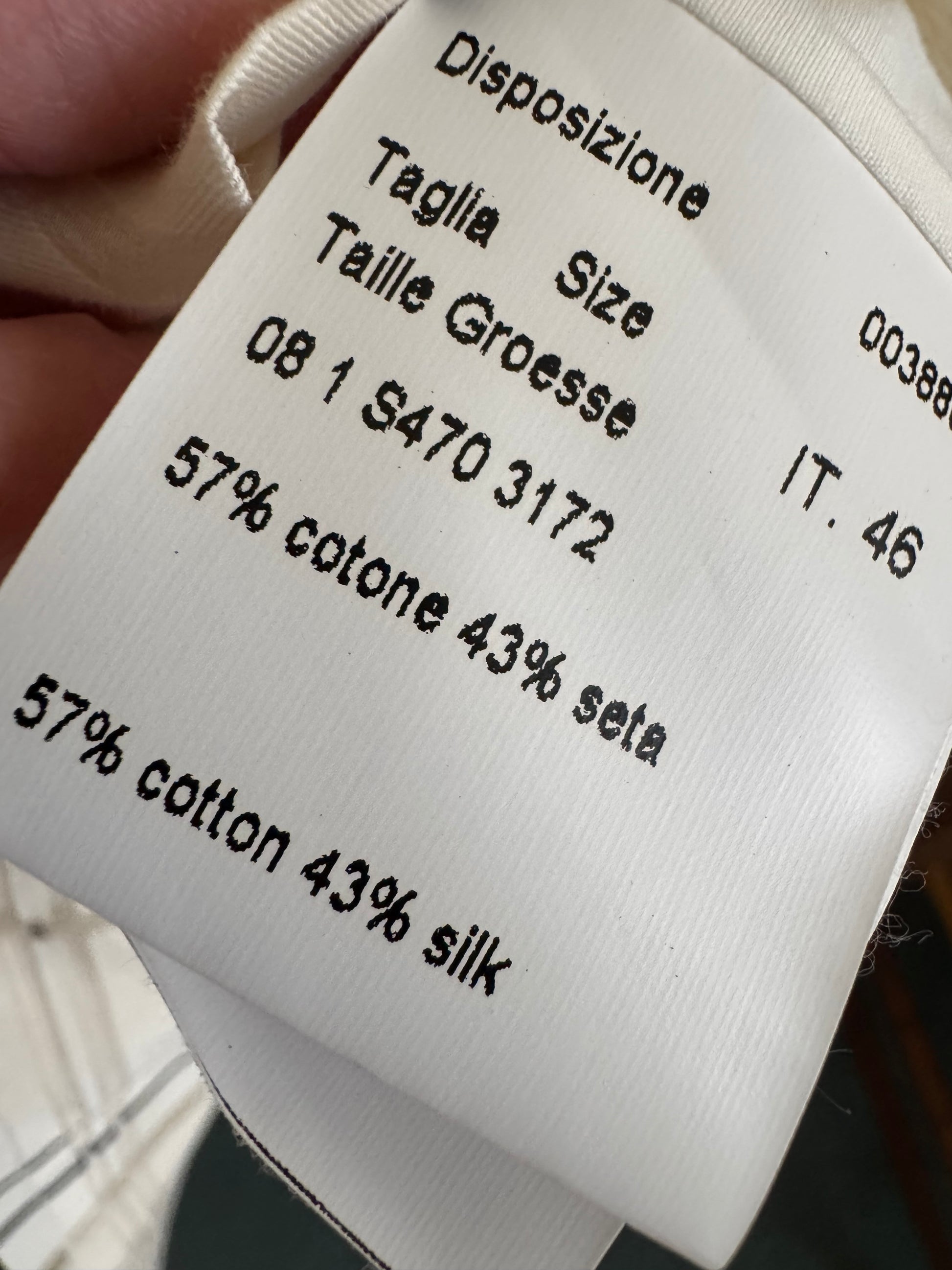 An absolute stunner! Gorgeous silk/Cotton fabric with an exquisite trim in a classic black and white plaid. This is definitely a closet must have!