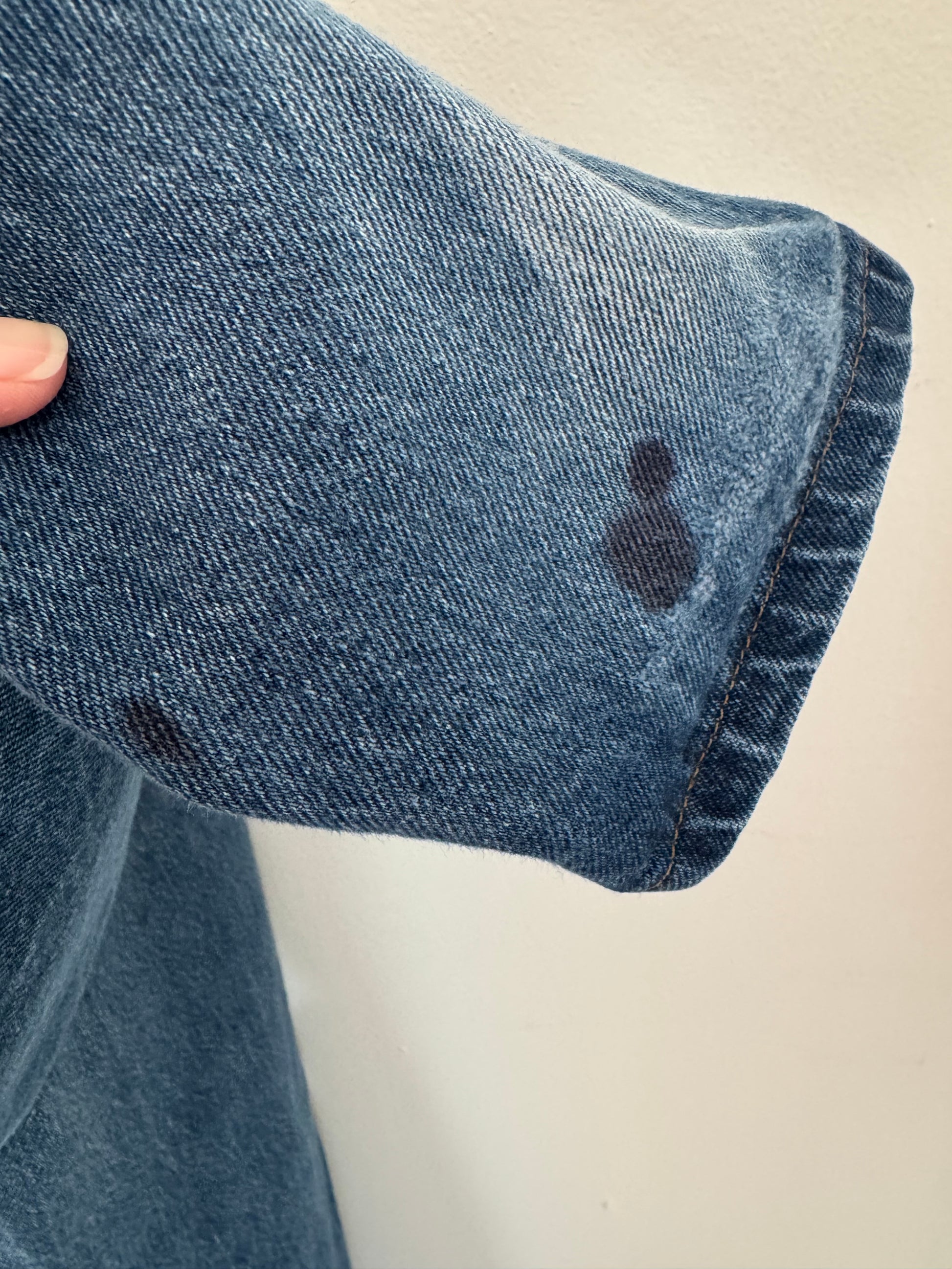 This is a reclaimed garment and may show signs of wear. We try to note any flaws in the piece but please understand you are buying a previously loved piece.