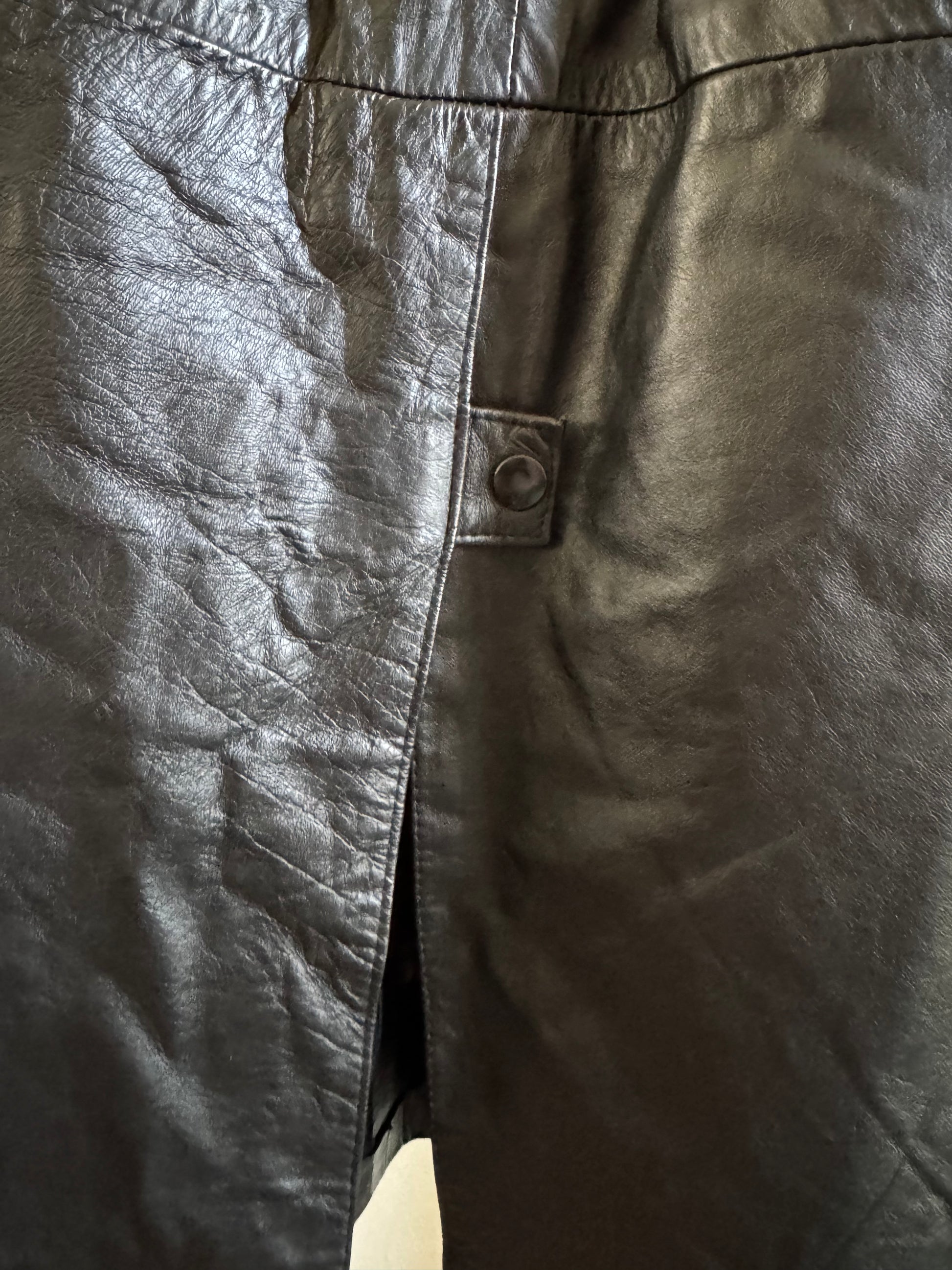 Vintage Leather Midi Skirt in Black