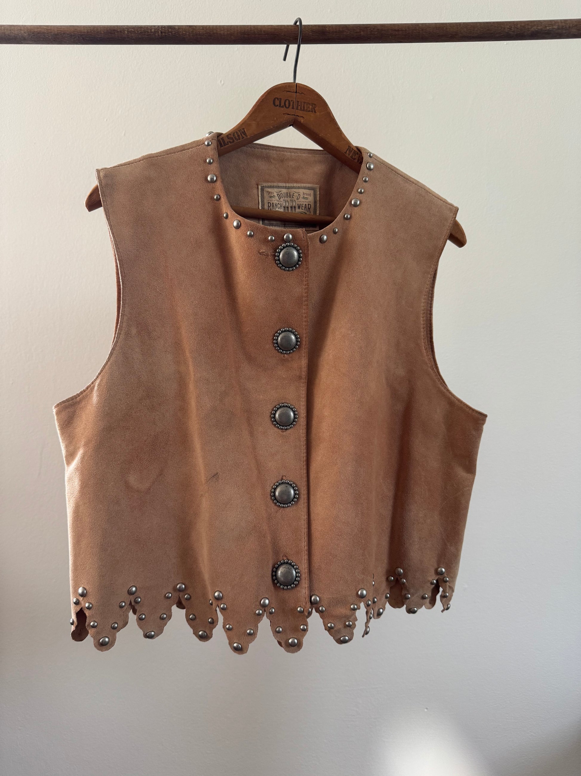 Vintage Double D Ranch Wear Leather Studded Vest in Tan