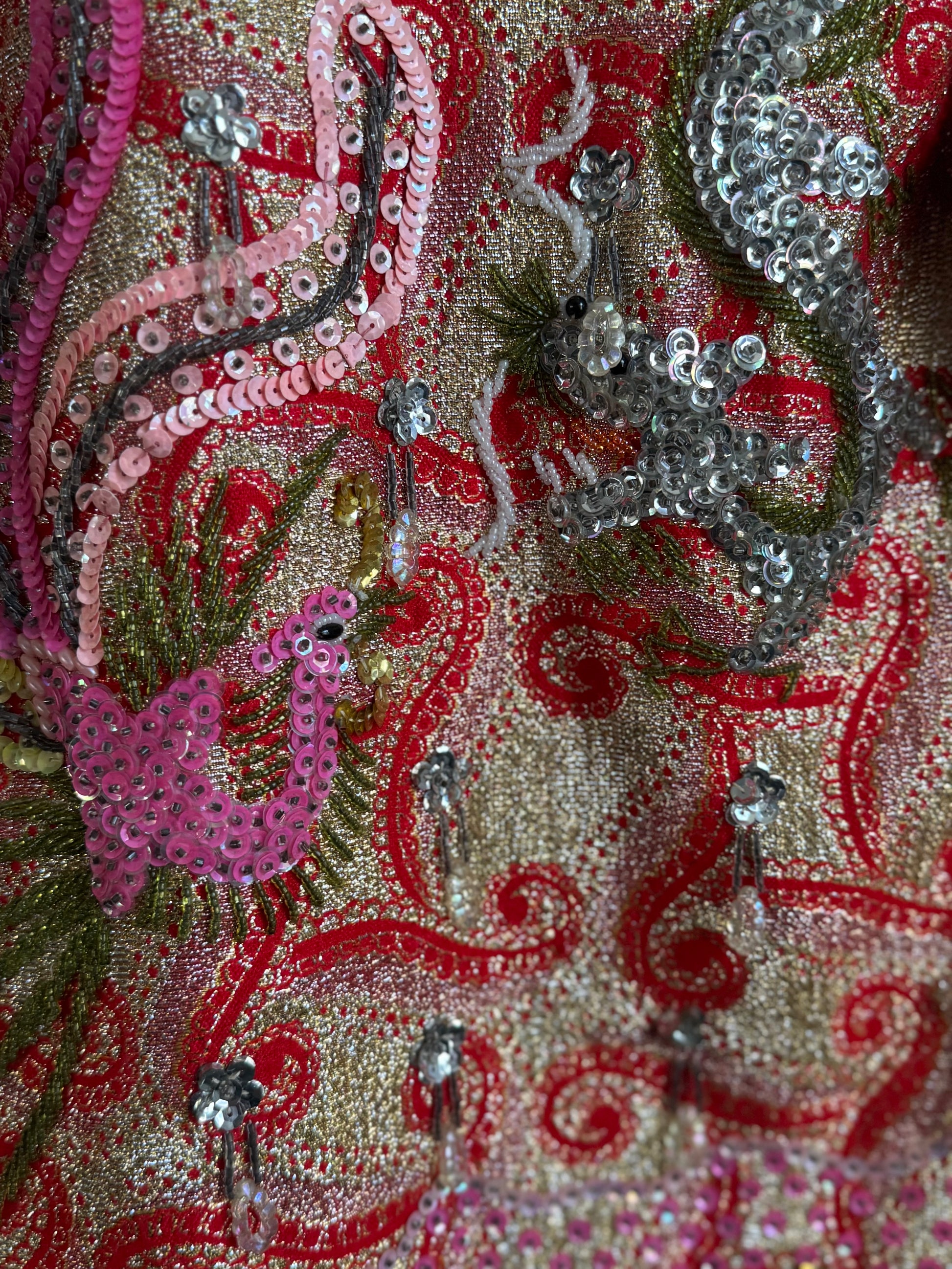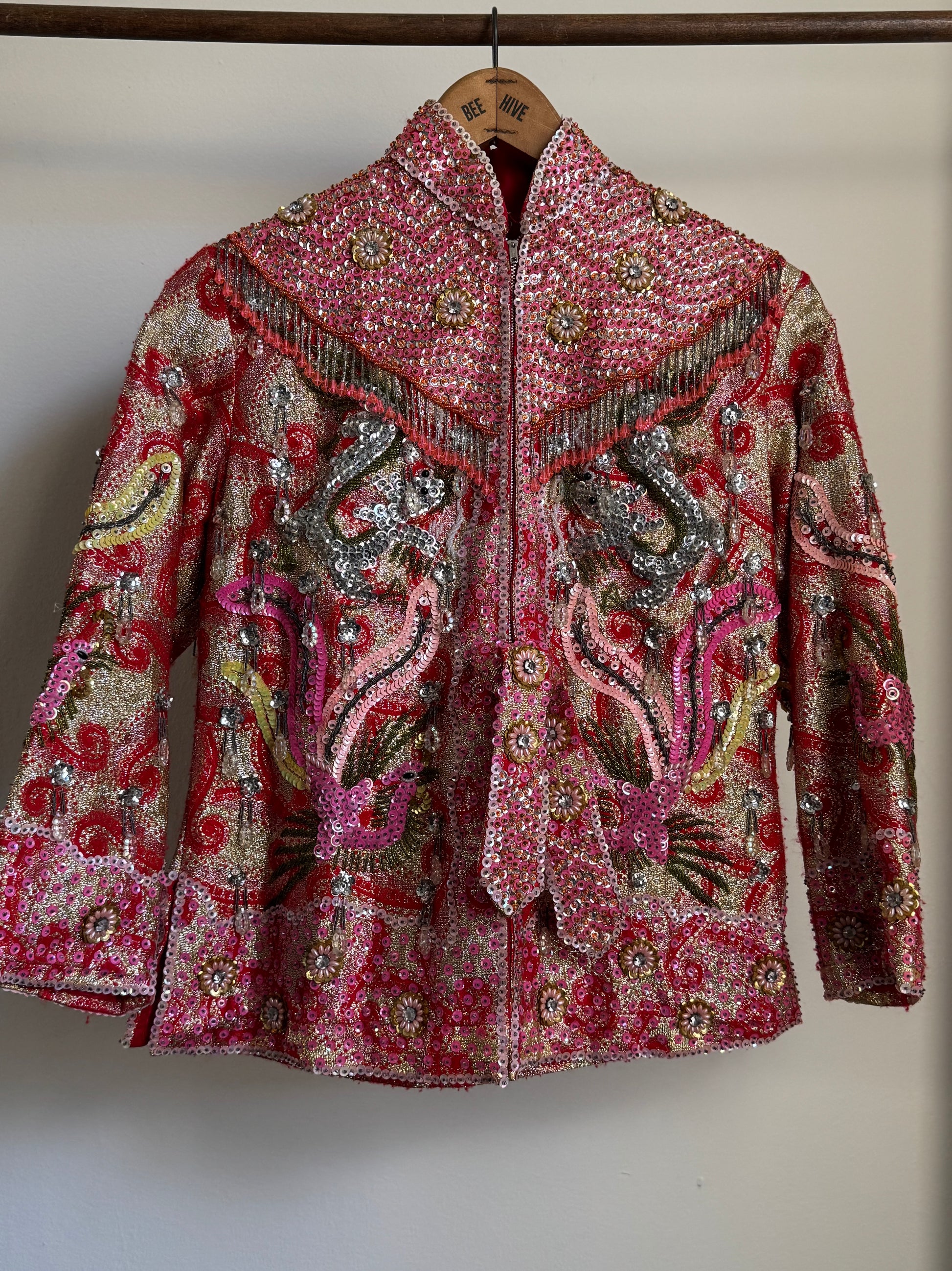 Vintage Dynasty Sequin & Beaded Jacket in Pink/Red