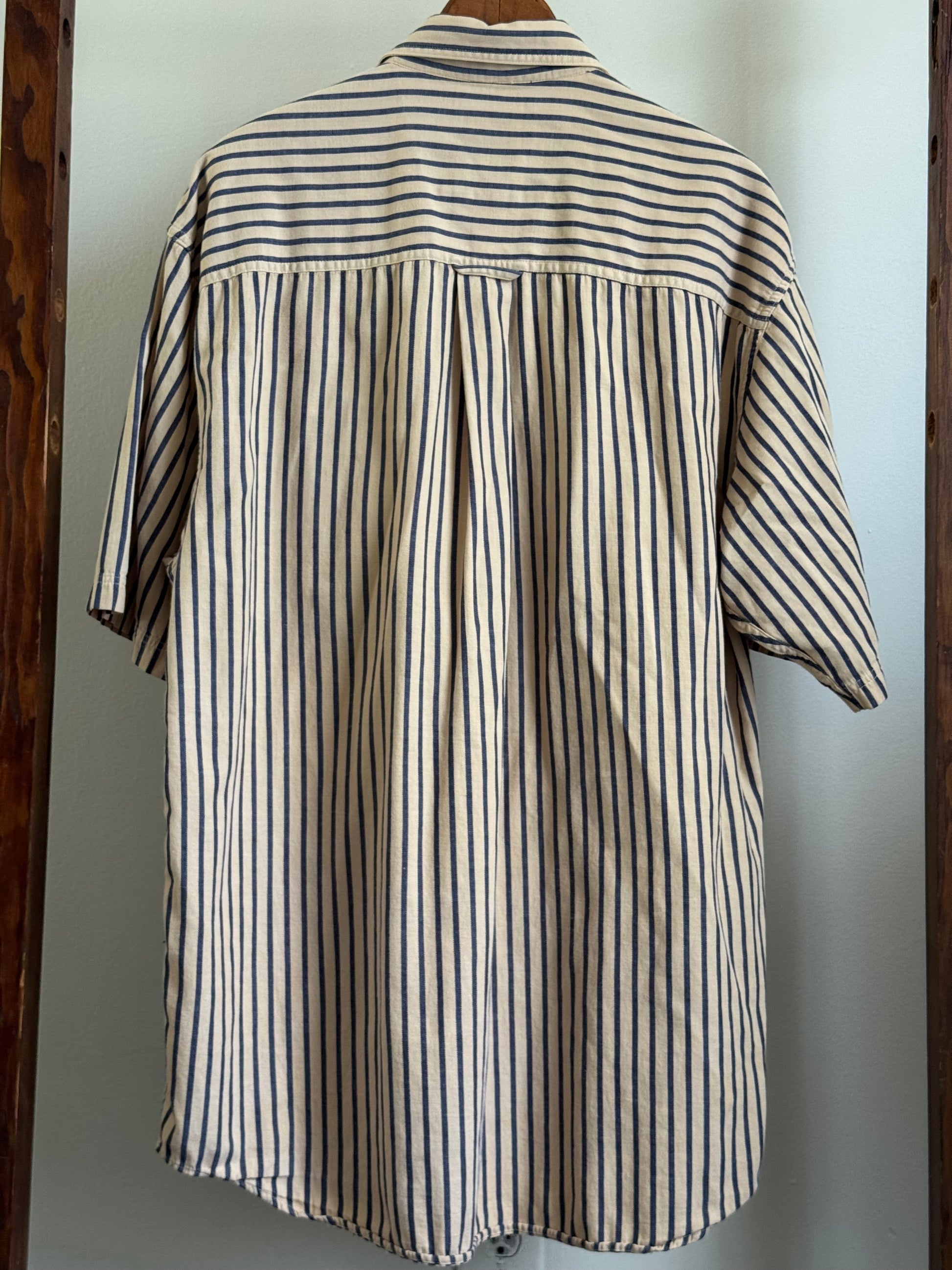 Vintage Eddie Bauer Cotton Short Sleeve Button Down in Tan/Denim