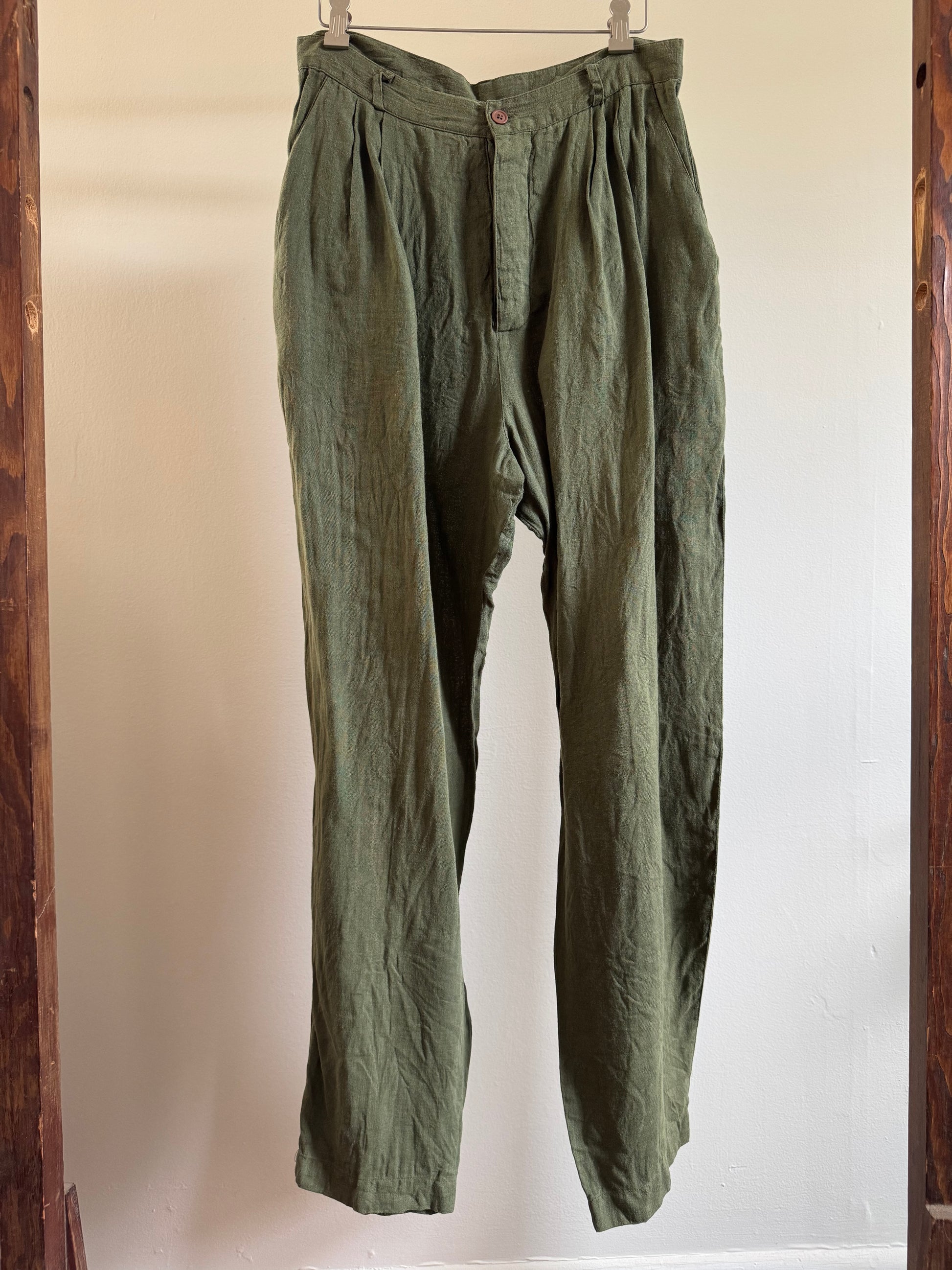 Vintage Go Linen Pleated Tapered Pant in Olive