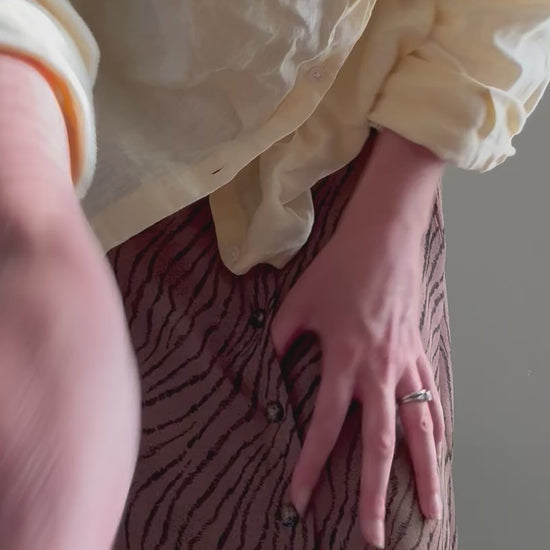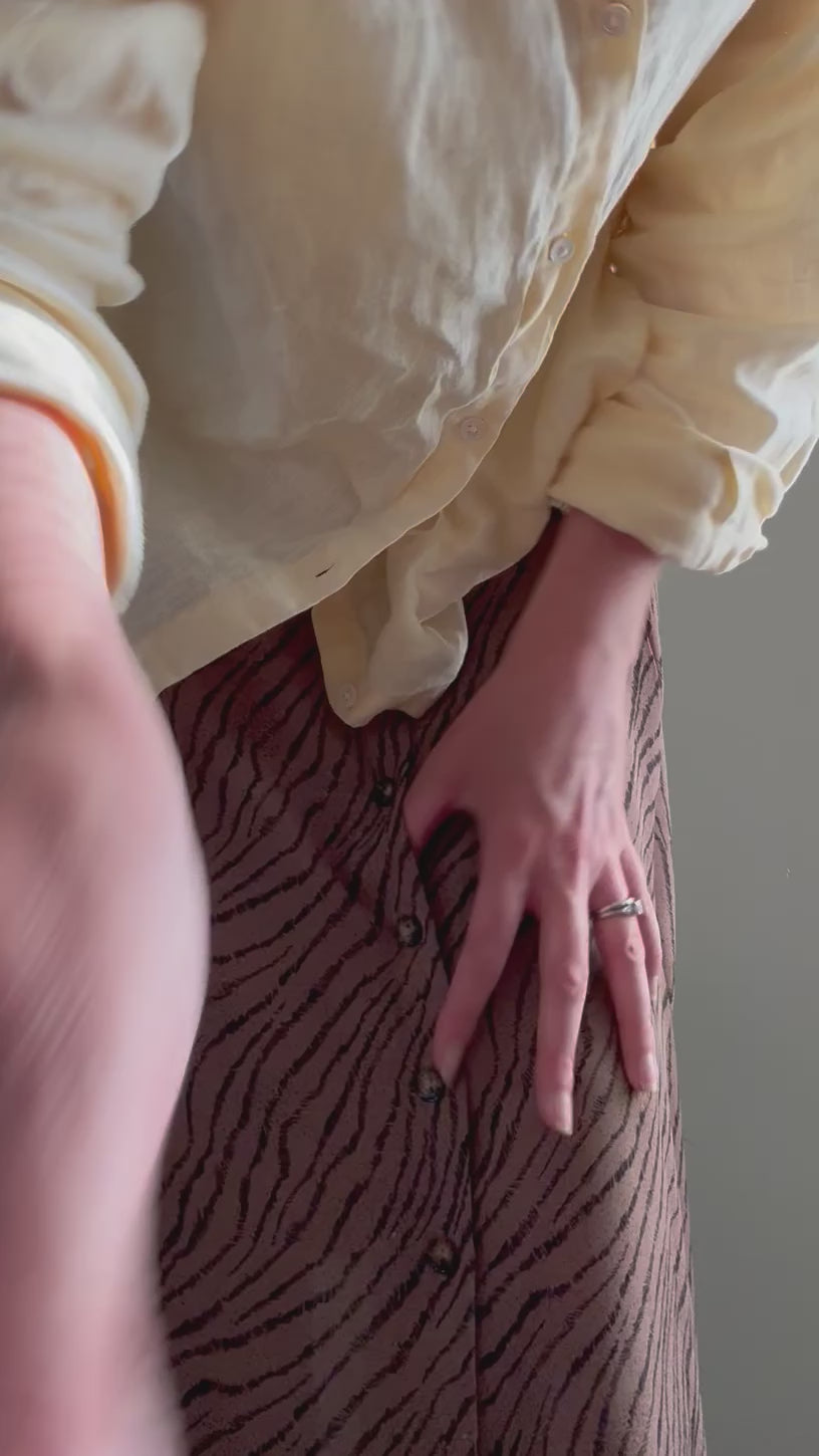 Beautiful shape and movement to this little skirt! We love it paired with a bodysuit or with an oversized light weight button down shirt.
