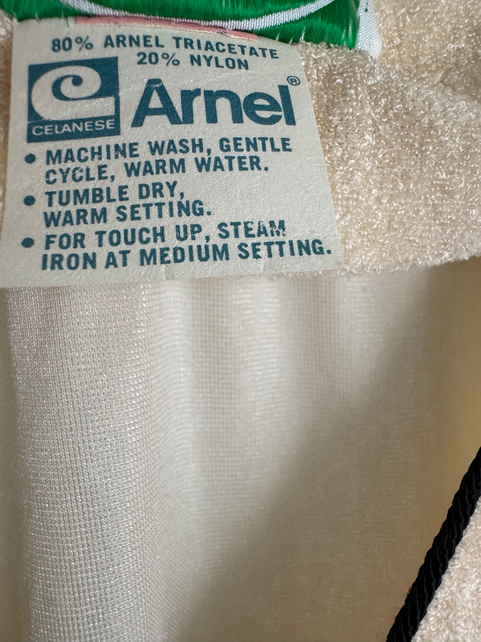 This is a reclaimed garment and may show signs of wear. We try to note any flaws in the piece but please understand you are buying a previously loved piece.