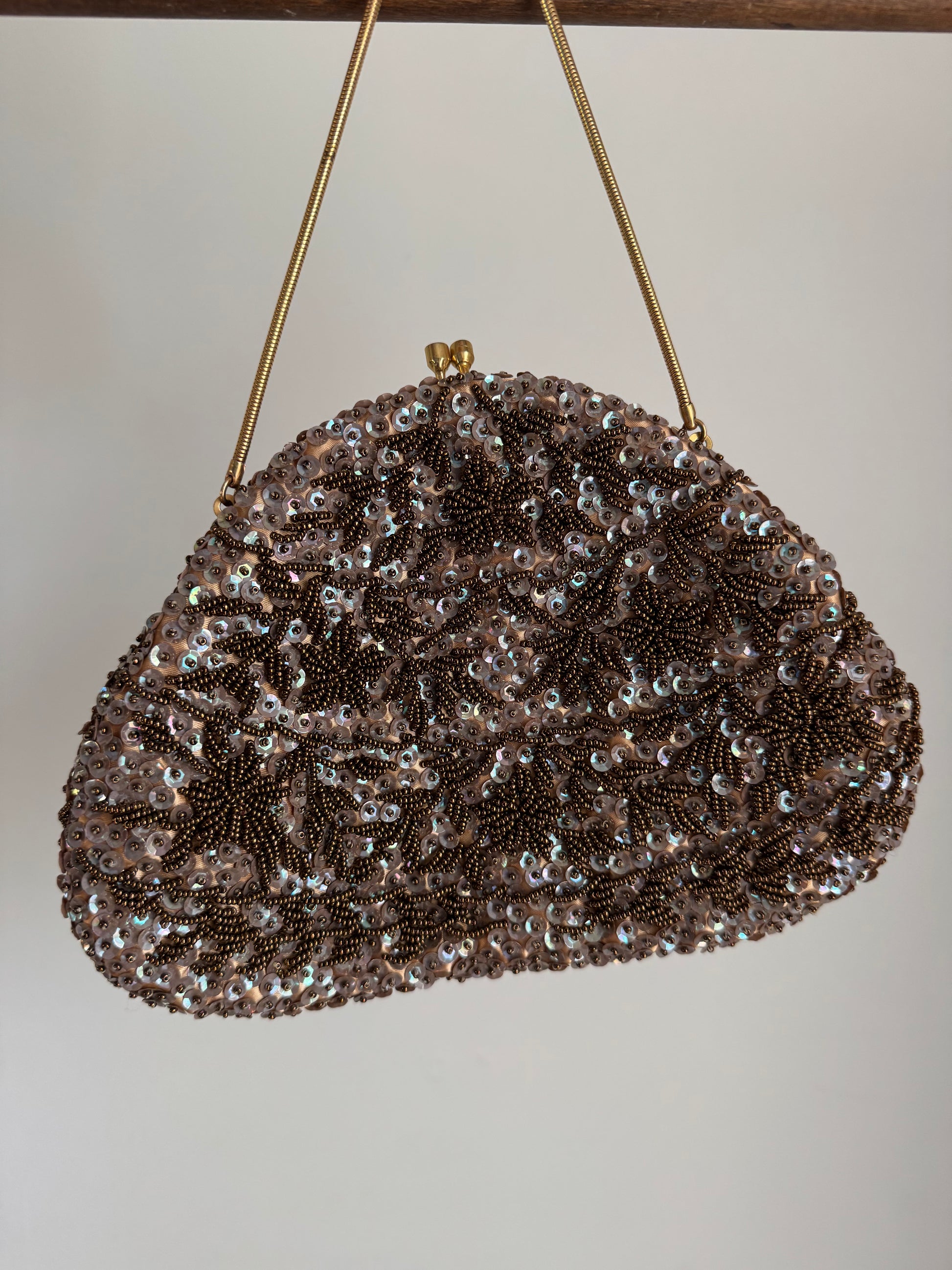 Such a beautiful little bag. We love the shape and the mix of sea foam and copper.