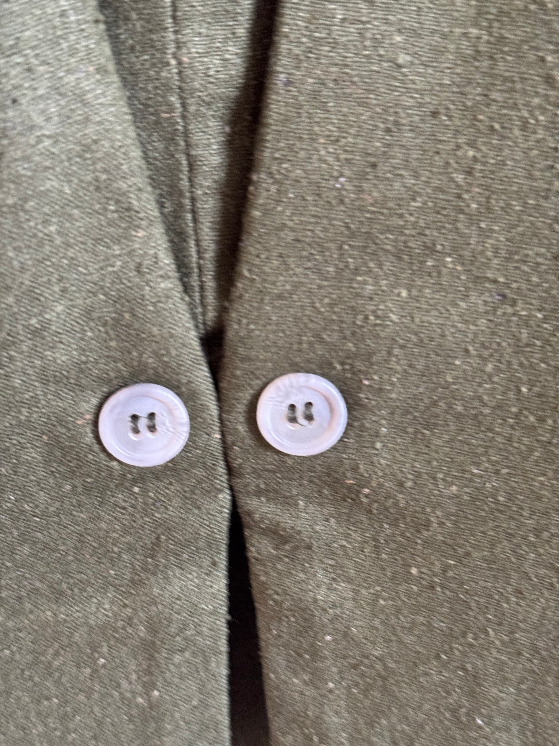 Such a beautiful jacket from the nubby silk fabric to the cropped double breasted shape. This is one of those pieces that will change depending on what you style it with. Pair it with a slim straight leg vintage Wrangler jean and boots and it will feel western but pair it with a black wide leg trouser and kitten heel sandal and it will feel NYC 90's.