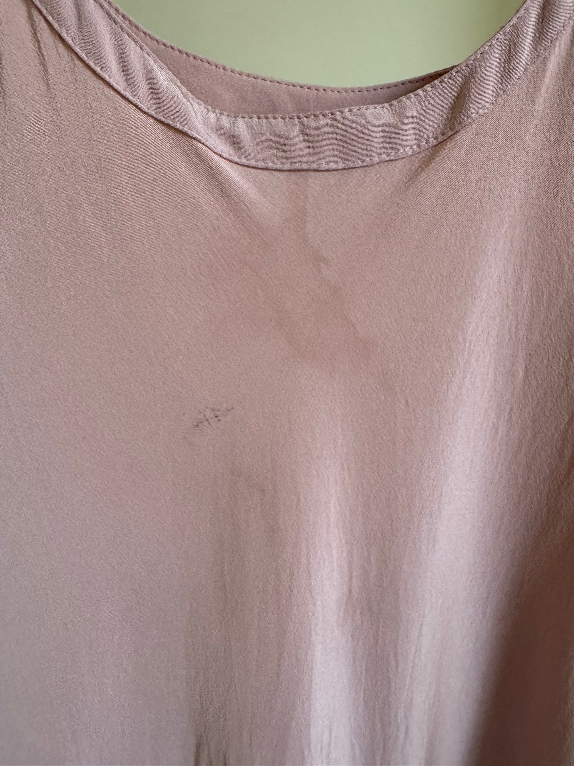 Condition: Good wearable used condition with a few pen marks on the side hip and back and a tonal stain at the back neckline. No holes or rips noted.