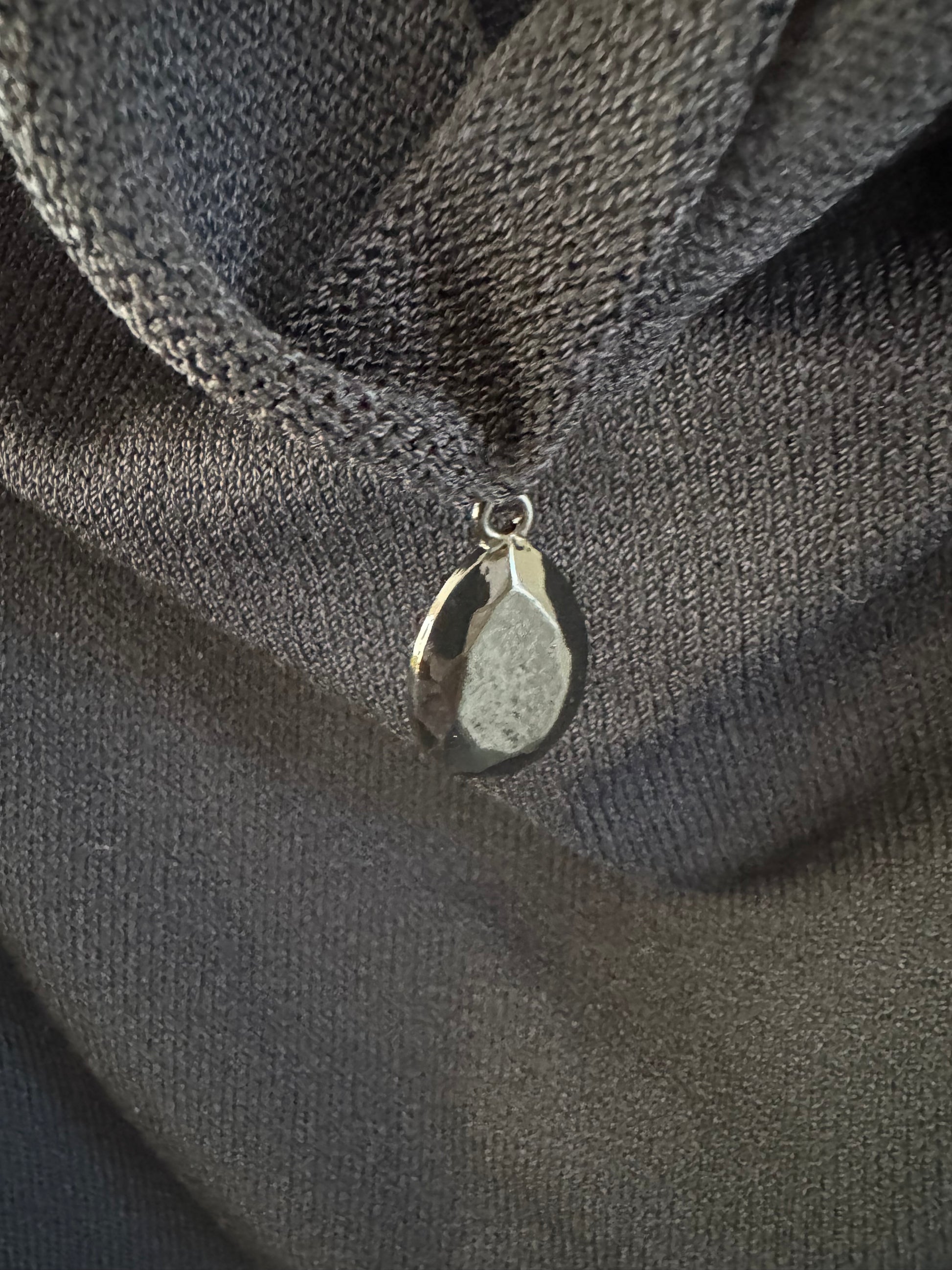 Beautiful knit top with weighted bead that sits in the neckline to hold the shape of the drape. Wear this with everything from denim cut off shorts to wide leg slouchy trousers.